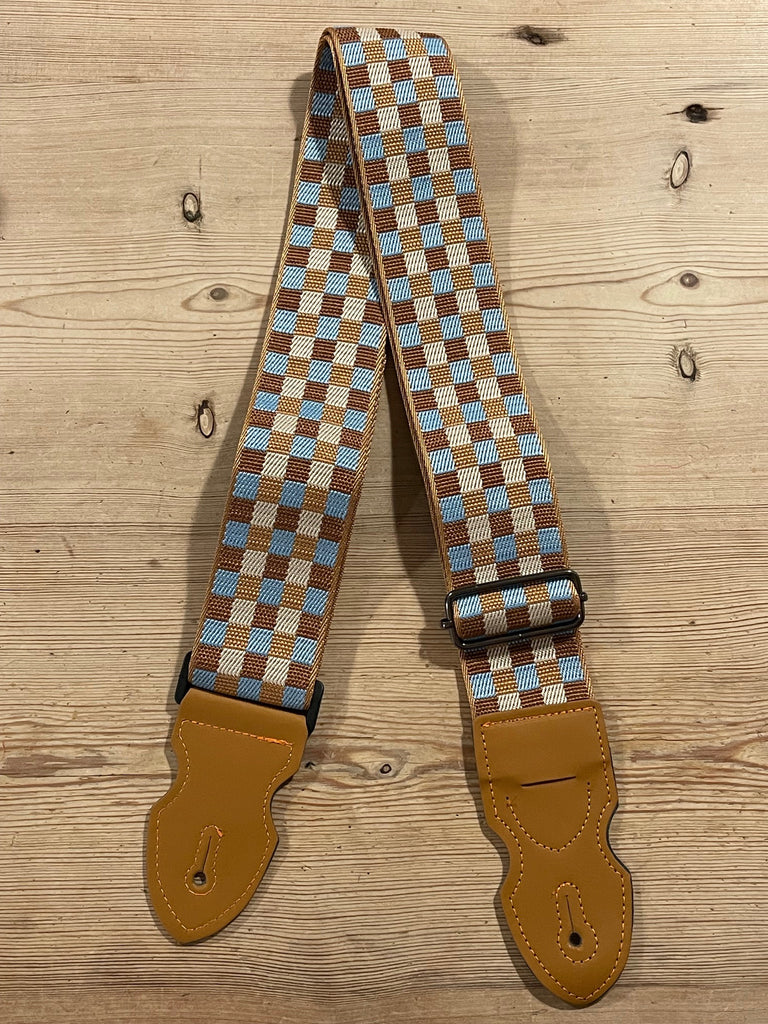 Earth Bond Vegan Light Brown Check Guitar Strap